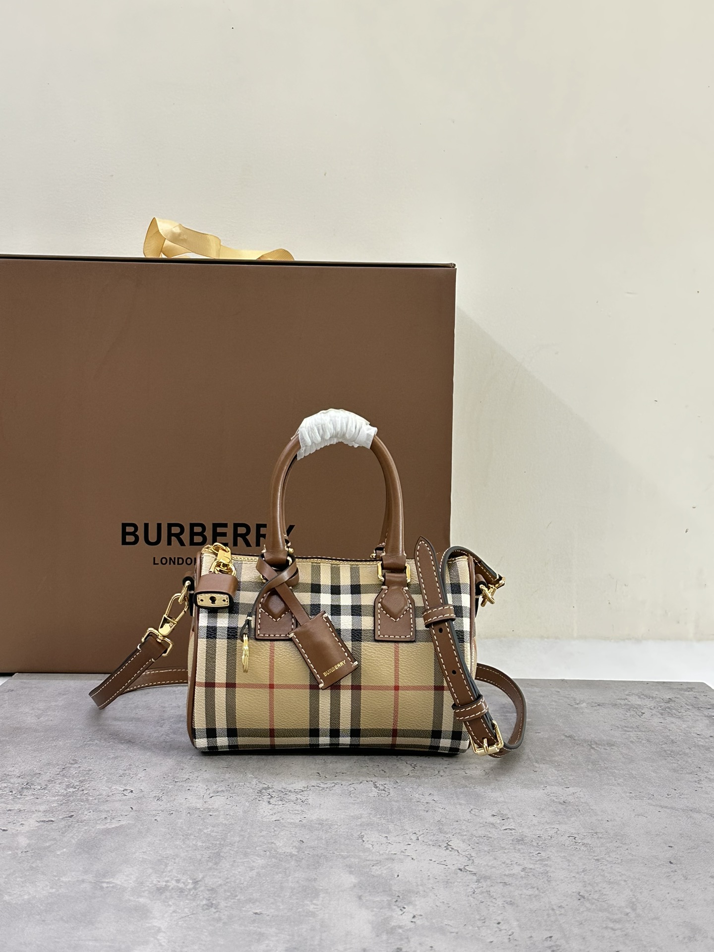 Bv*b*rry Reversible Monogram Motif Vintage Check Belt 1.4 Width Archive Beige
